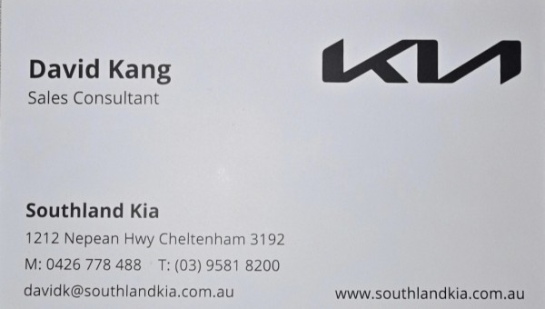 멜번 **Southland Kia**에서 근무하고 있는 David Kang 입니다.
