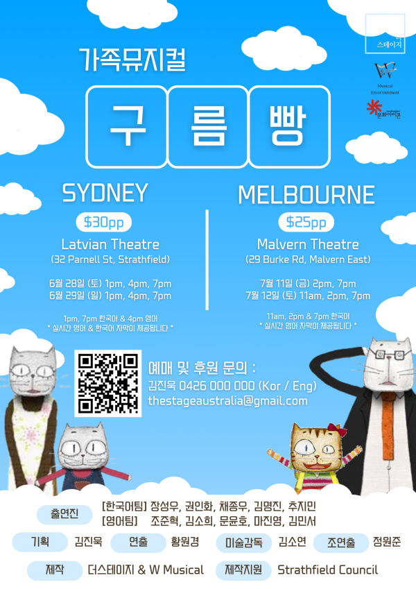 [ 멜번 공연 회차 추가! ] 가족뮤지컬 ☁️ 구름빵 ☁️ 호주 공연 [ 6월 시드니, 7월 멜번 ]