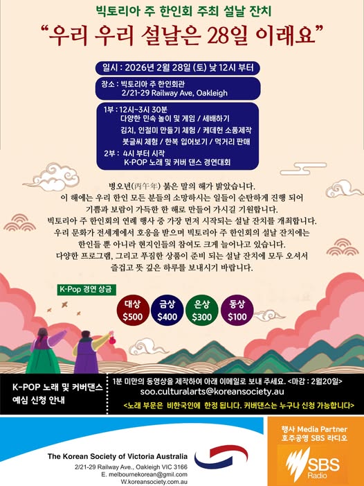 [안내] 2026 빅토리아 주 한인회 주최 설날 잔치 및 K-POP 경연대회 개최