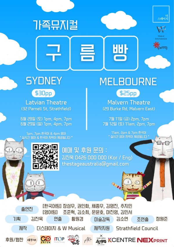 온 가족이 함께 웃는 시간, 가족뮤지컬 ‘구름빵’과 함께해요 [ 멜번 공연 D-1 / 예매현황 : 620석 / 655석 ]