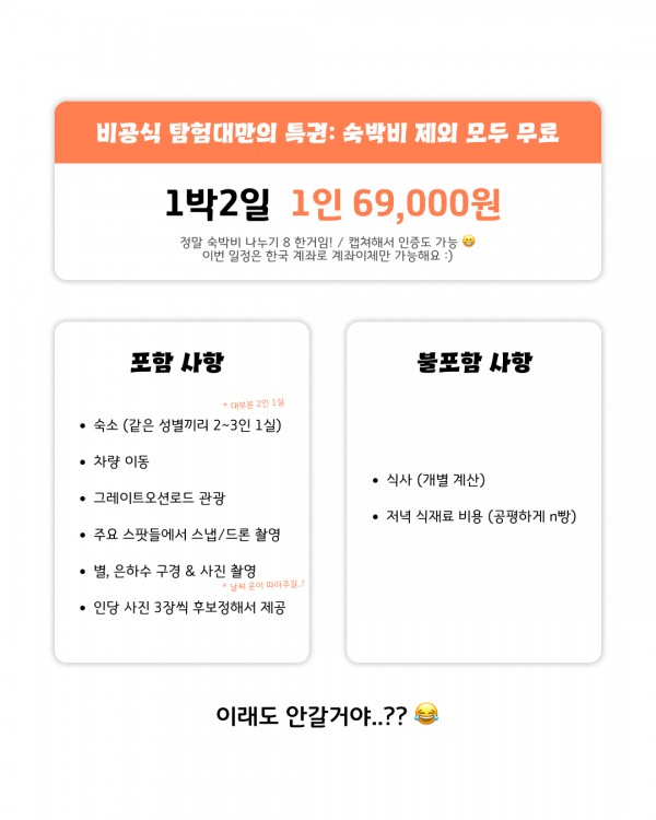 - 차량·관광·스냅/드론 촬영 등 모두 무료! (비공식 탐험대만의 특권‼️)