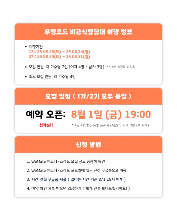 - 일정은 공식 탐험대와 동일하게 진행돼요!