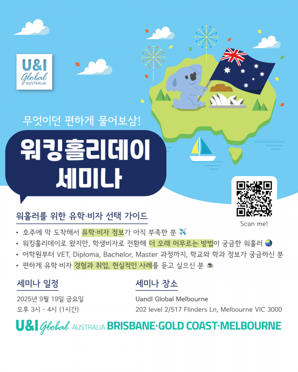 호주 생활 고민 해결! 유앤아이 워킹홀리데이 세미나 OPEN