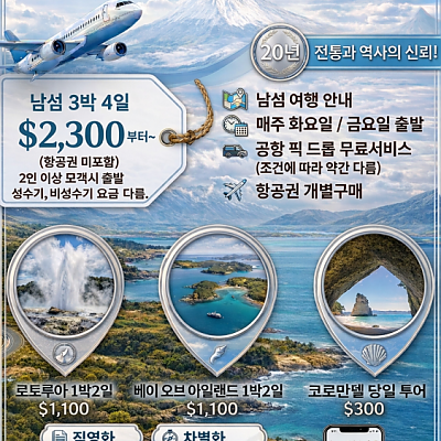 30년의 검증된 경력, 호주 출발 뉴질랜드 여행, 현지 한인 여행사에서 편하게 준비하세요